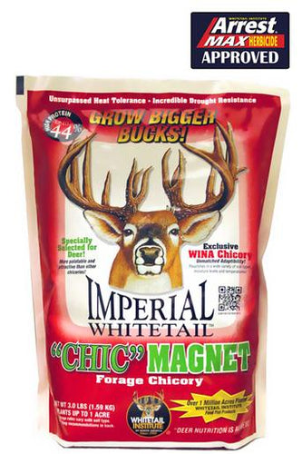 Try Imperial Whitetail “Chic” Magnet, featuring WINA-100 Forage Chicory, which is more tender and less waxy than traditional chicories – and deer are extremely attracted to it. “Chic” Magnet can be planted alone, mixed with other seeds, or over-seeded into existing forages to provide gains in variety, attractiveness and drought-resistance.